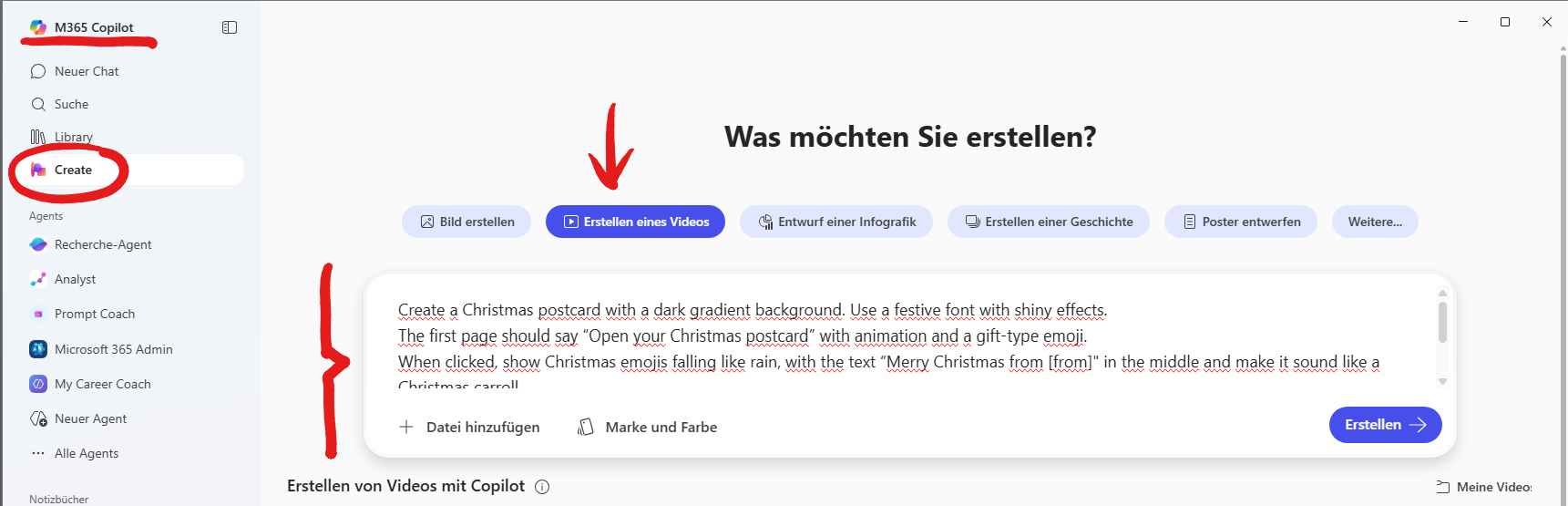 Here goes to the instructions to create your Season's greetings video with Copilot: