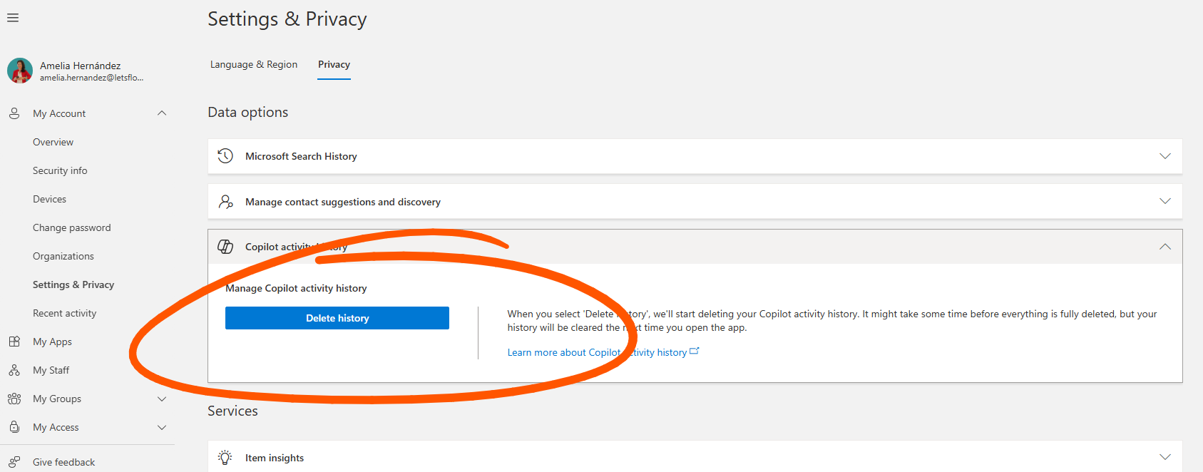 2️⃣ Delete Copilot activity history >> Open Copilot activity history